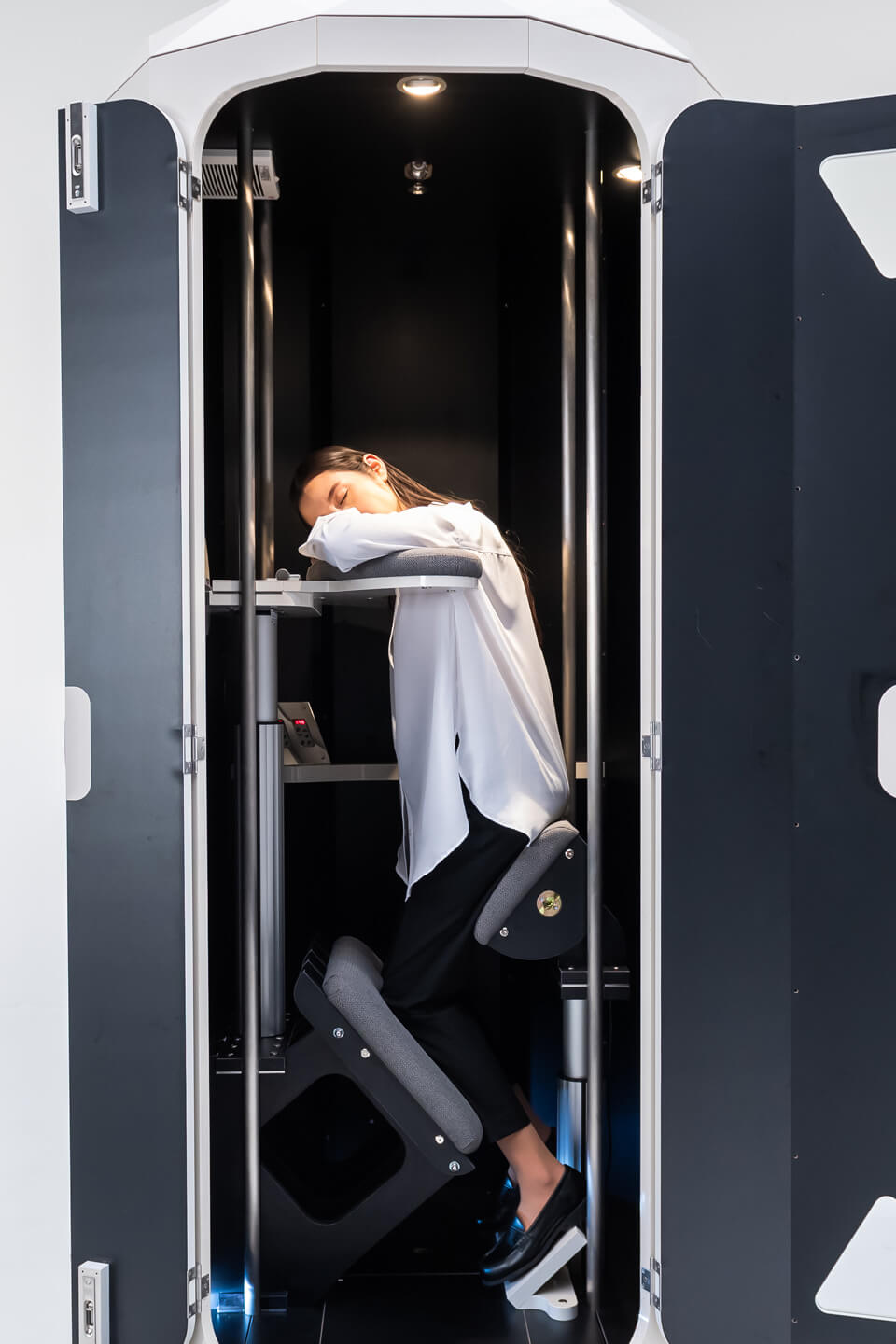 可以站著休息的午睡箱“giraffenap”“giraffenap”是一個午睡盒,當您感到疲倦或困倦時,可以讓您站著休息。只需20分鐘,您就會神清氣爽,有助於提高表現,如恢復疲勞、減輕壓力、恢復記憶力和注意力、提高創造力等。 作為一種新的休息方式,我們將在辦公室等處提供可以站立小憩的空間,為員工的健康促進和績效提高做出貢獻。