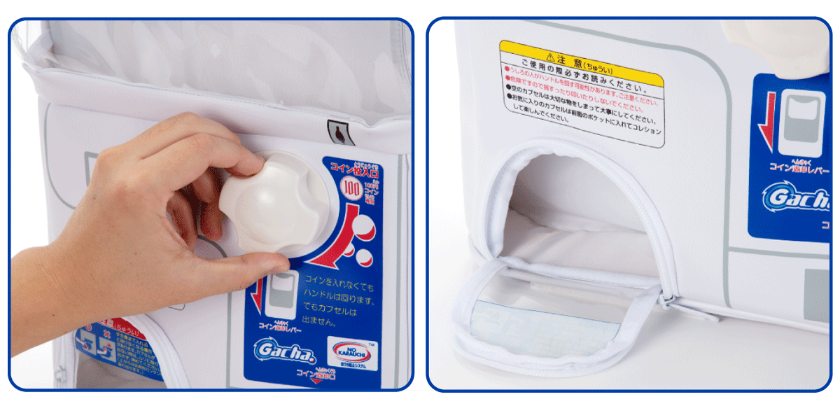 左下方也製造了扭蛋出口,雖不是真的能從上方跌出扭蛋,但設計很可愛;更點睛之處,莫過於可轉動的手掣,不論手感及聲音也還原了真品效果,相信一眾扭蛋愛好者對這個特別之處著迷。