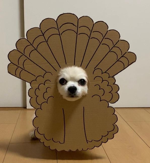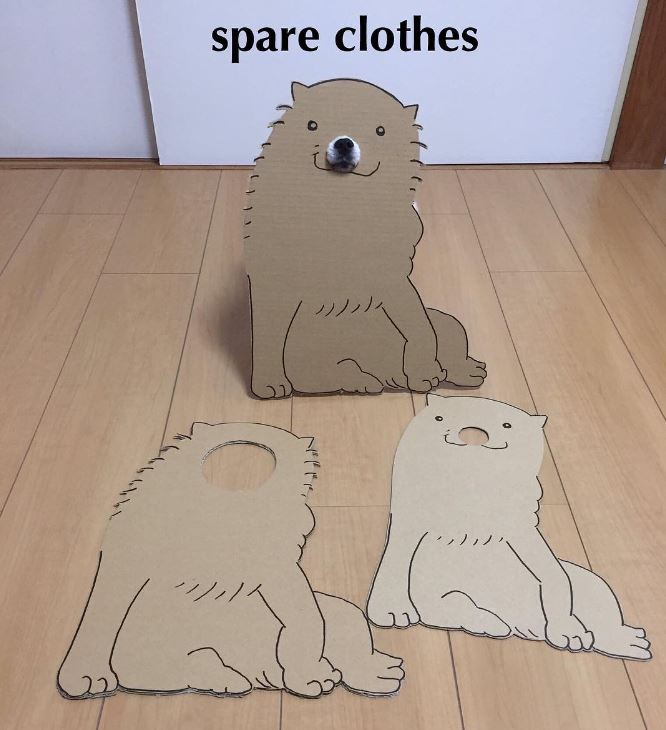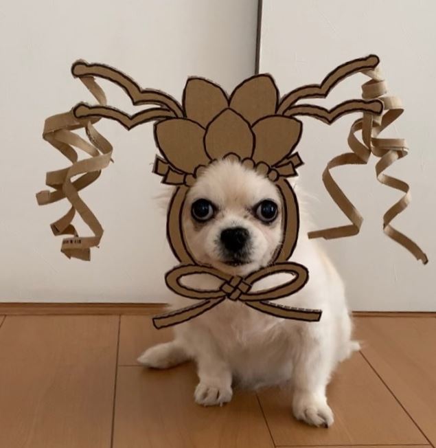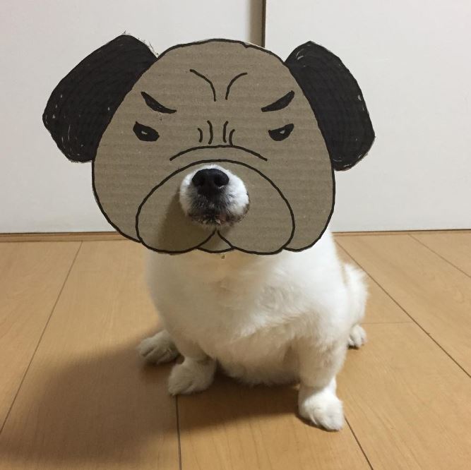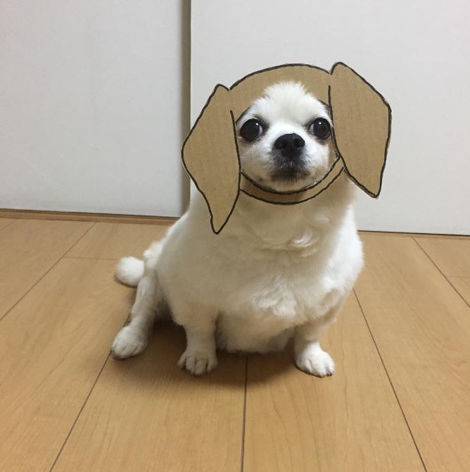 汪星人好像表現平淡,有時還帶點無奈表情,但每次都配合飼主指示,乖乖套上特別為牠設計的造型。