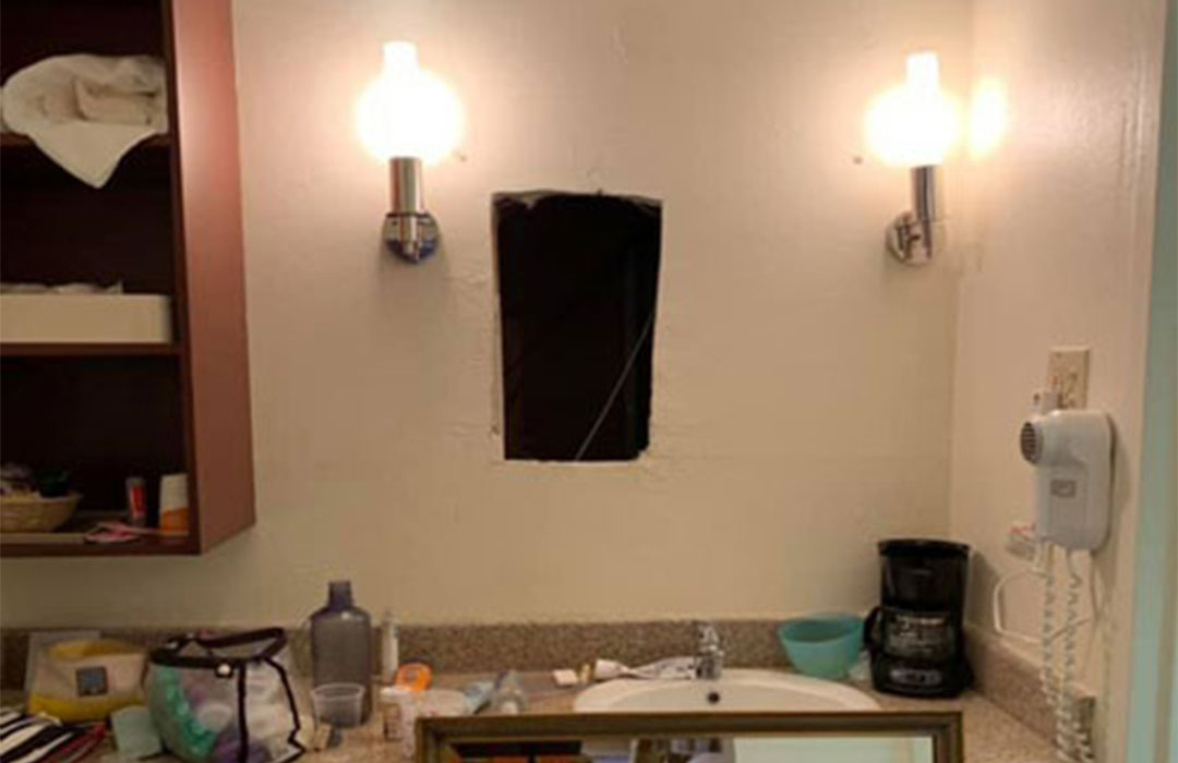 旅遊要小心:酒店房驚見陌生人藏身鏡後!
