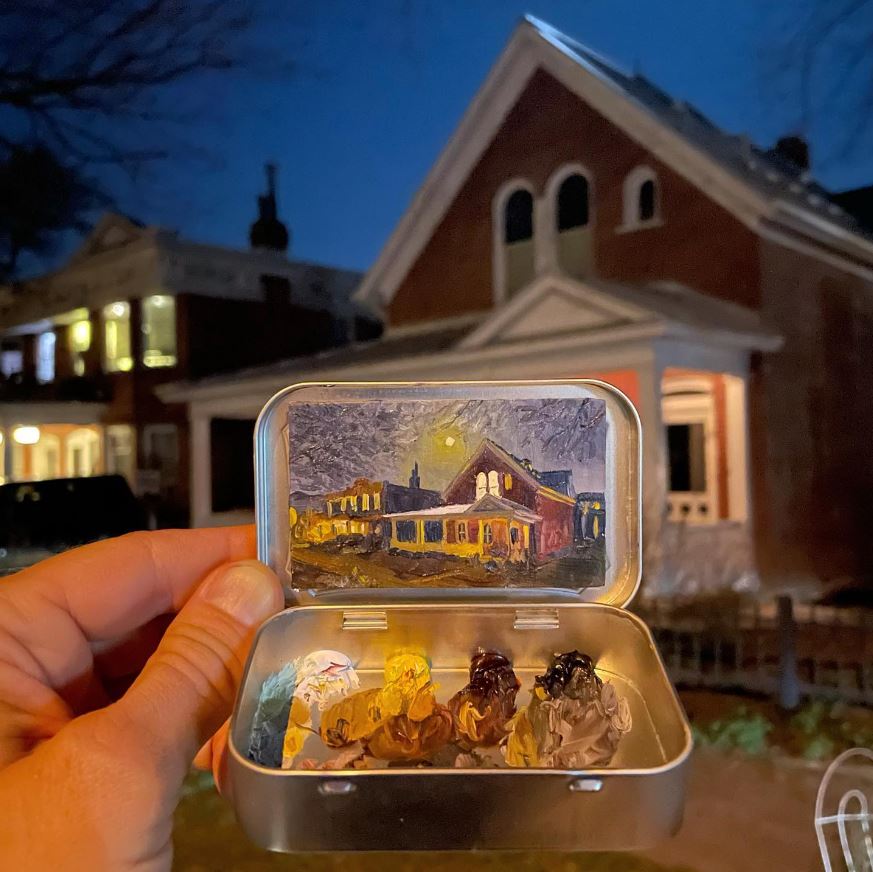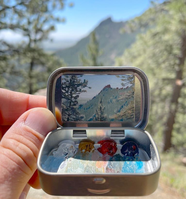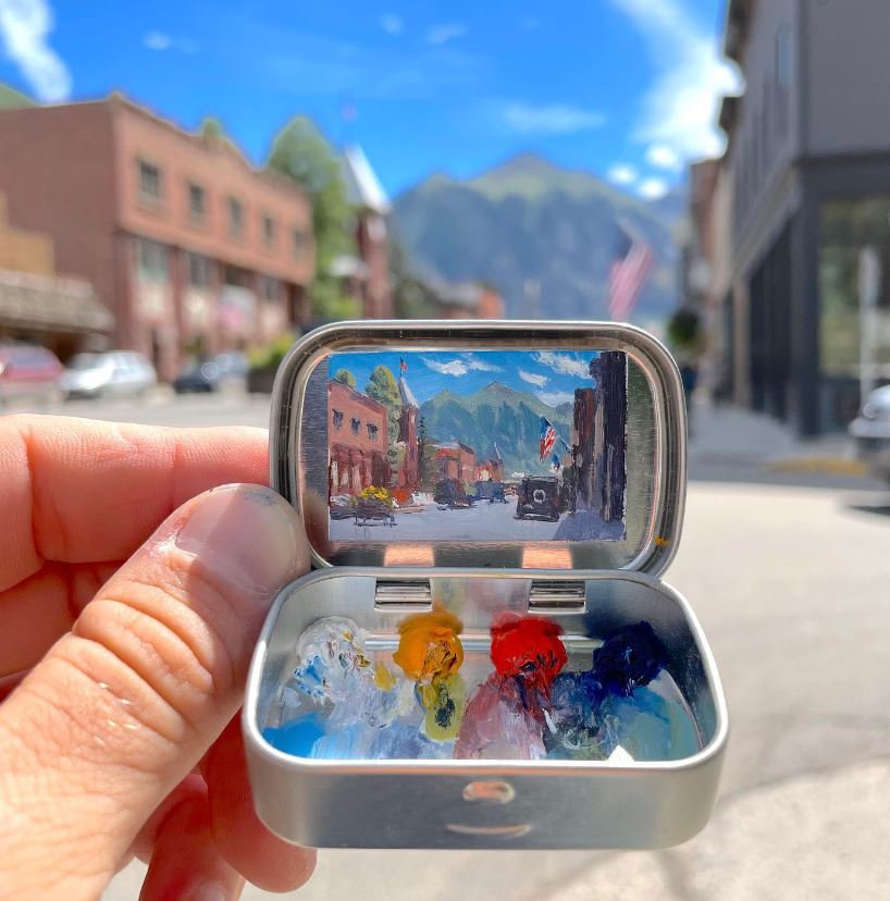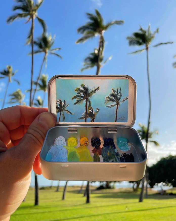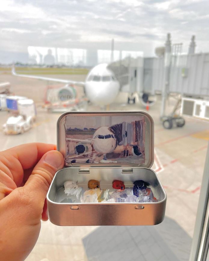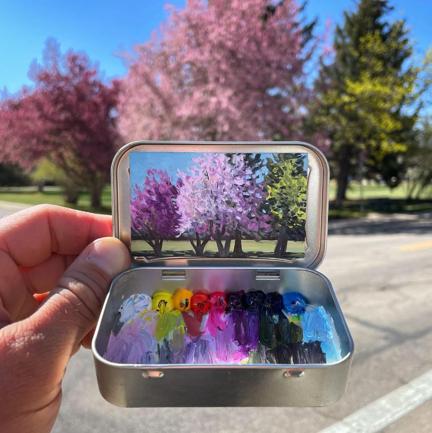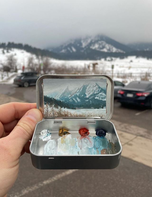 美國藝術家Remington Robinson走遍多國,把美景留在小小鐵盒內。大約5年前開始用以小小的薄荷糖鐡盒作畫,雖面積有限,但每每把風景細節也留下。