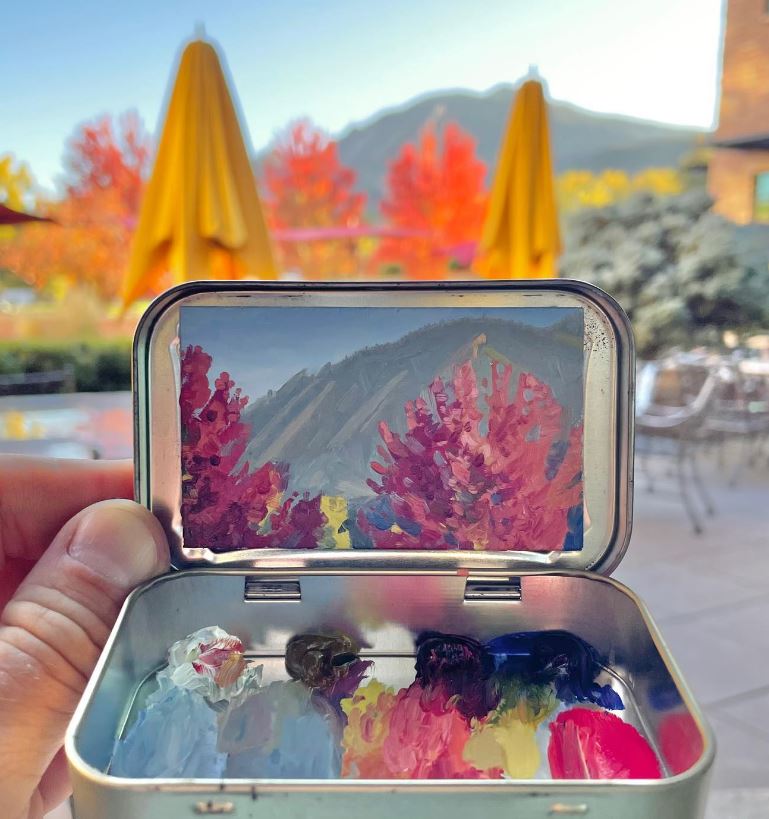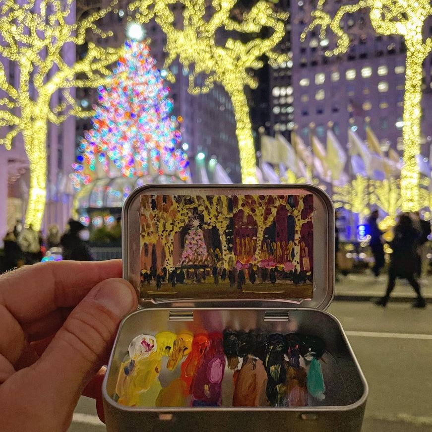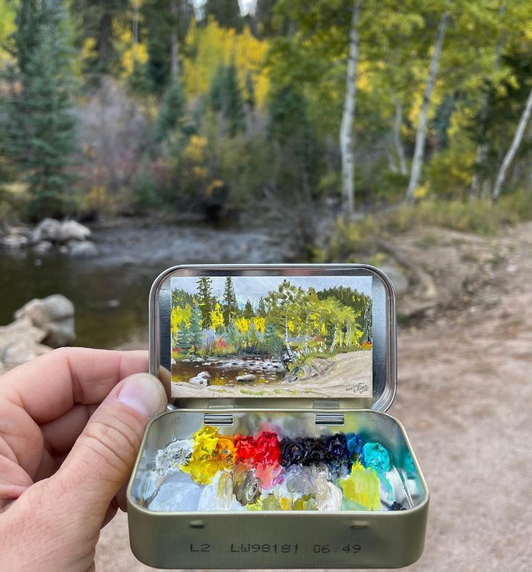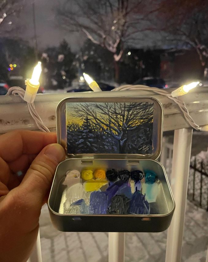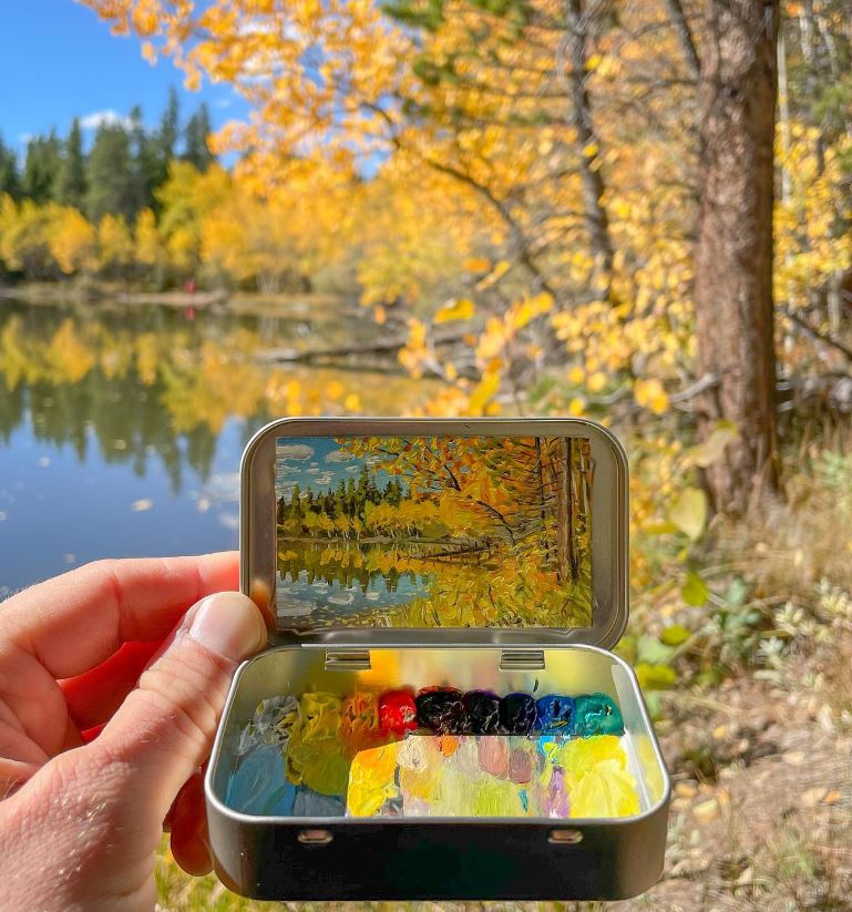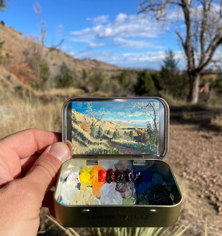 美國藝術家Remington Robinson走遍多國,把美景留在小小鐵盒內。大約5年前開始用以小小的薄荷糖鐡盒作畫,雖面積有限,但每每把風景細節也留下。