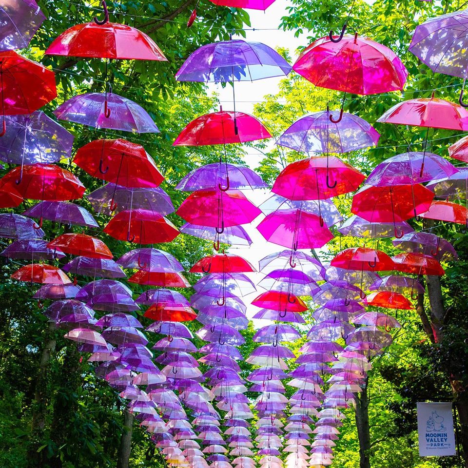 位於日本埼玉縣飯能市、姆明主題公園隔離嘅「metsä village」休閒度假勝地近日推出「Umbrella Sky」展,超過1000把雨傘漂浮喺空中,形成一道天空透亮彩虹陪你漫步森林!想去打靚卡?由即日起到7月15日,唔好錯過啊!