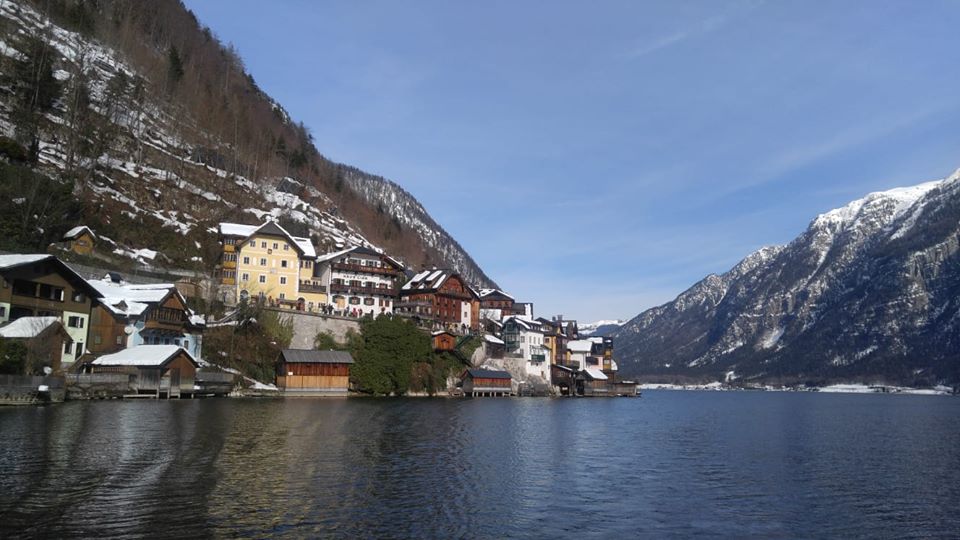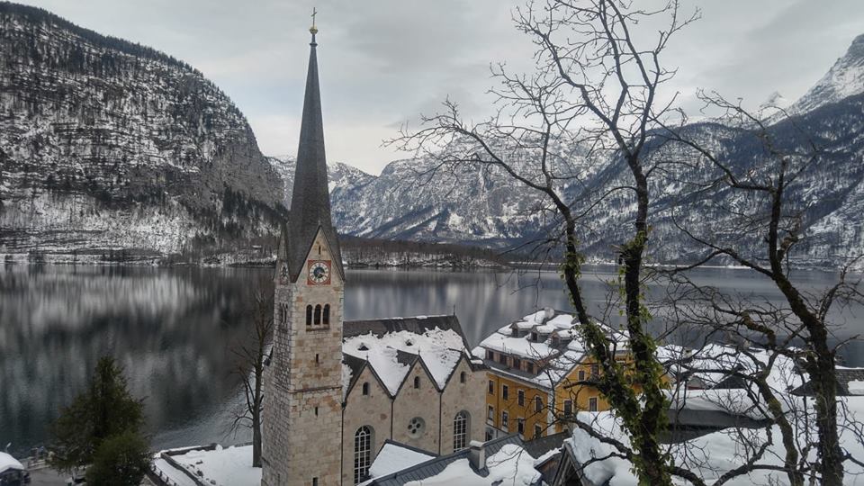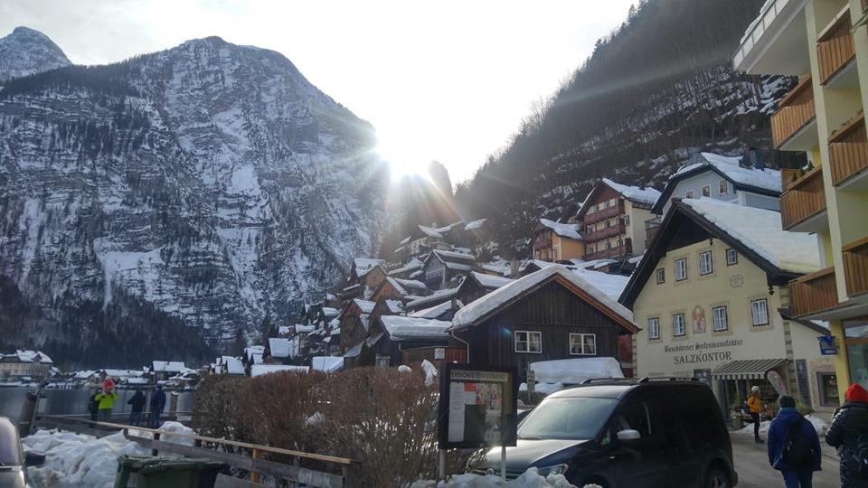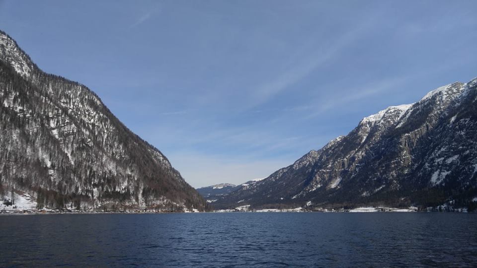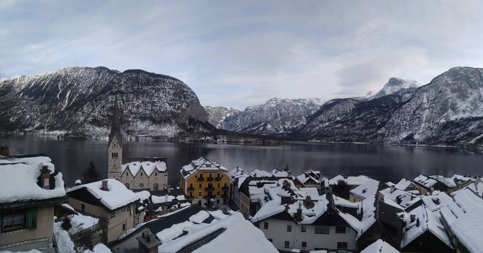 由蕯爾斯堡出發到哈爾施塔特乘搭火車大約需2.5小時,雖路程有點遠,但沿途藍天白雪,相機快門停不下來!