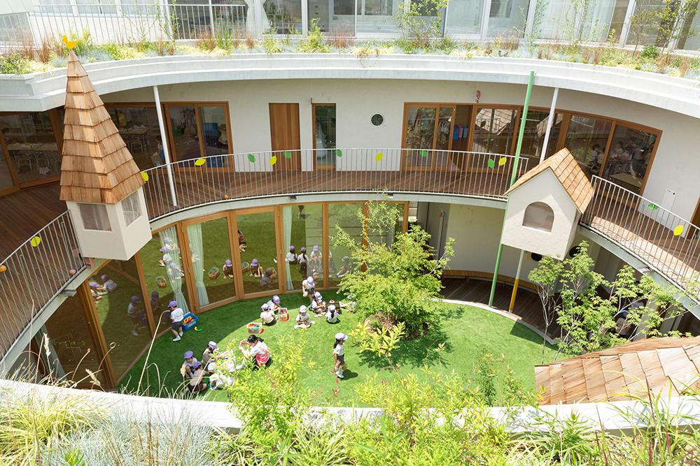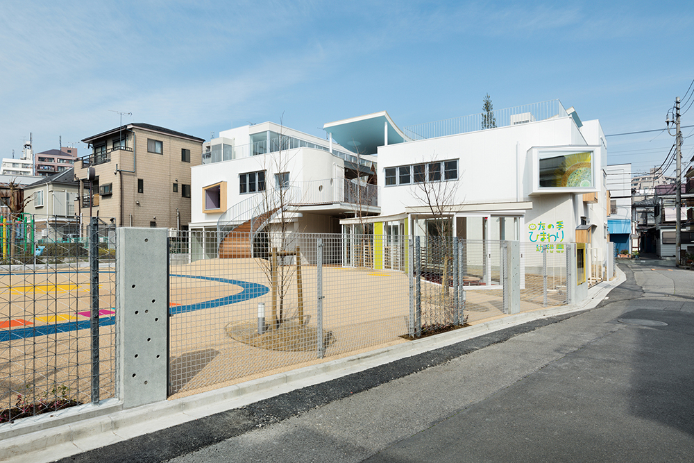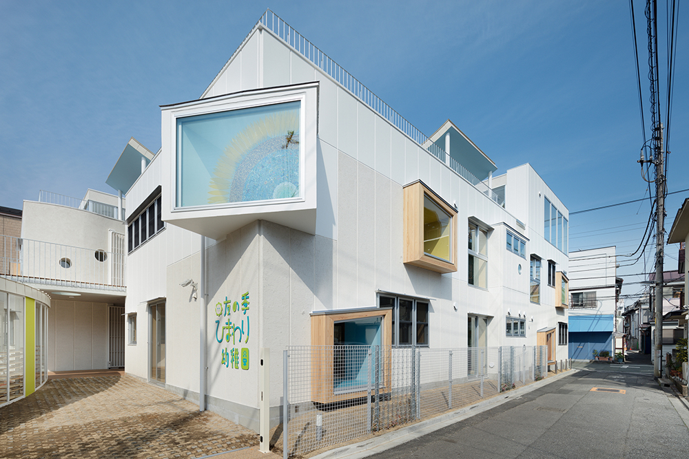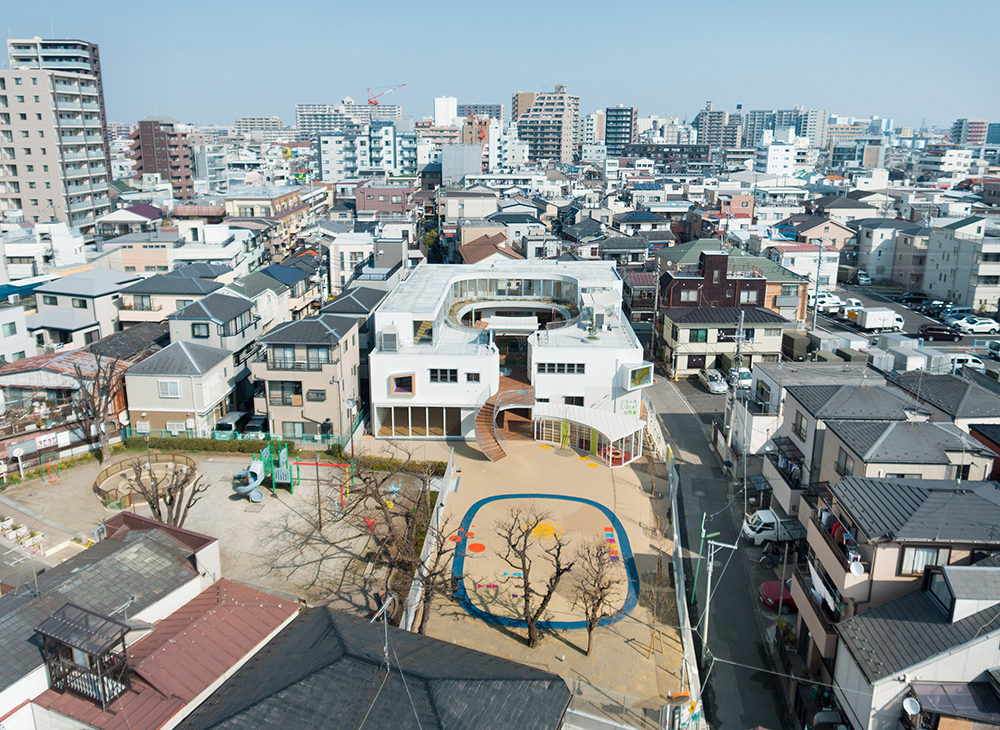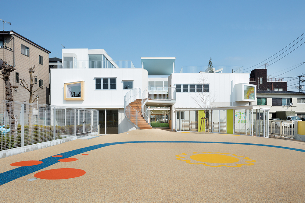 位於日本東京荒川區的私立幼稚園 「友の季ひまわり」,周圍被密集房屋和工廠包圍,負責建築設計的MAMM DESIGN希望可以創造一個花園建築Style,讓小朋友隨時隨地都能擁抱大自然。